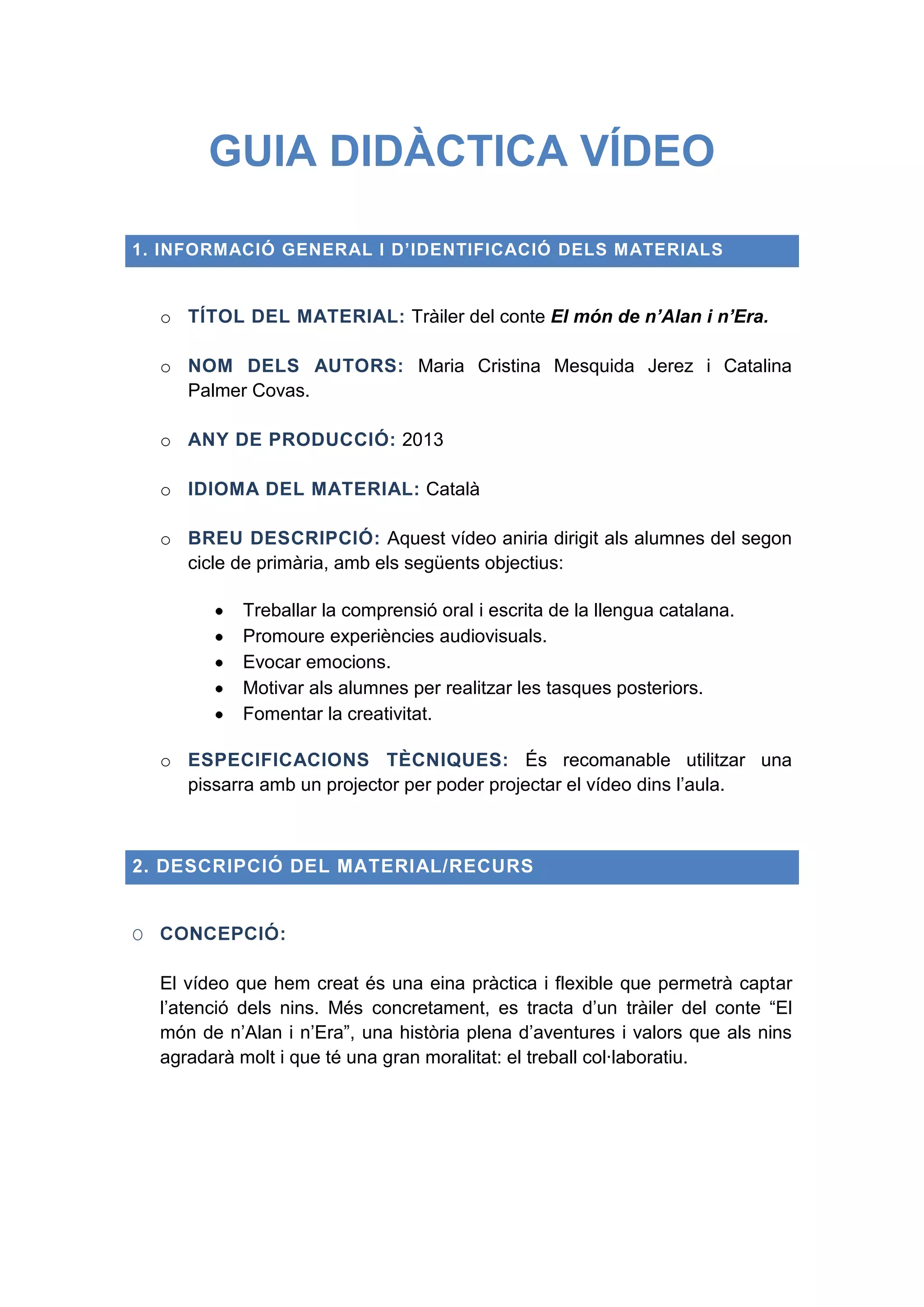 GUIA DIDÀCTICA VÍDEO