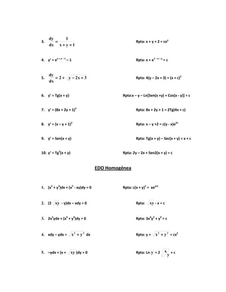 1. The document contains 10 problems involving exact differential equations, 10 problems involving homogeneous differential equations, and 10 other groups of problems involving various types of differential equations.
