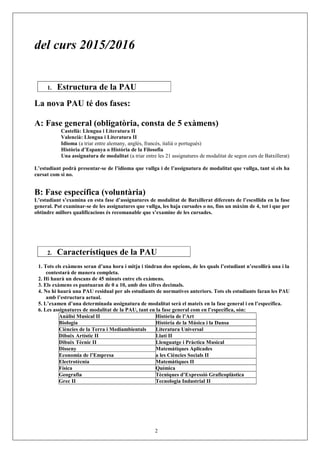 2. Característiques de la PAU