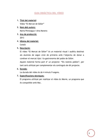 El vídeo “El Mercat de Sóller” és un material visual i auditiu destinat