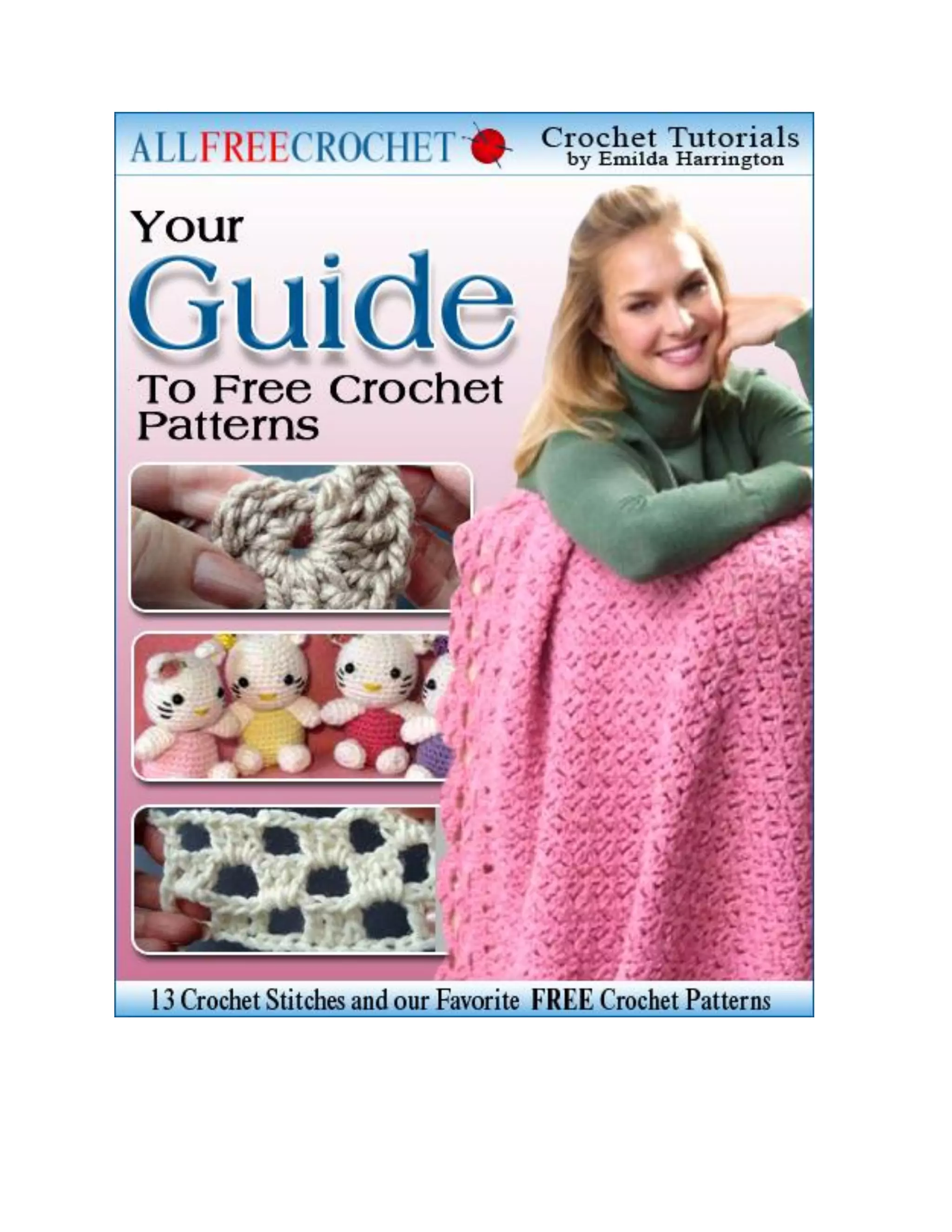 This document provides instructions for 13 different crochet stitches and includes summaries of 10 crochet patterns. It begins with a table of contents listing the various stitches and patterns included. The stitches section provides detailed, step-by-step instructions on how to execute different stitches like the seed stitch, basketweave stitch, shell stitch, and more. Each stitch tutorial includes photos. The latter part of the document outlines 10 crochet pattern projects, including afghans, shawls, amigurumi, and provides their summaries. The document aims to be a comprehensive guide to learning various crochet stitches and finding free crochet patterns.