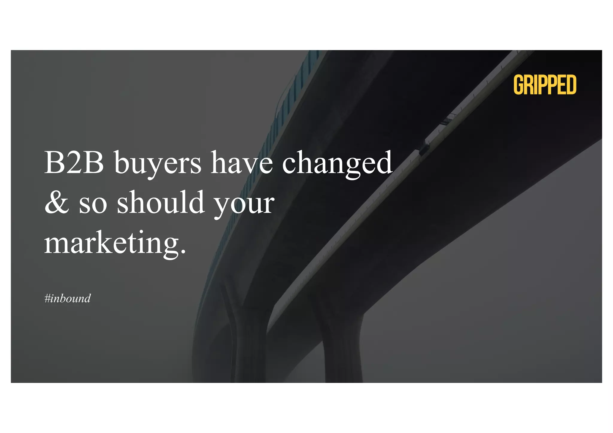 The document summarizes how B2B buyers have changed and marketing needs to change with them. It notes that buyers are now more informed and in control of their journey. It outlines how buyers now start research online through search and spend more time on blogs than social media or email. The traditional sales funnel has flipped, with buyers now further along in the process before engaging with vendors. As a result, the document recommends that marketers shift from outbound interruptive approaches to inbound strategies focused on creating helpful content to attract and nurture prospects. It provides suggestions for content to create, how to map keywords to rank for, and using analytics to test and improve approaches.
