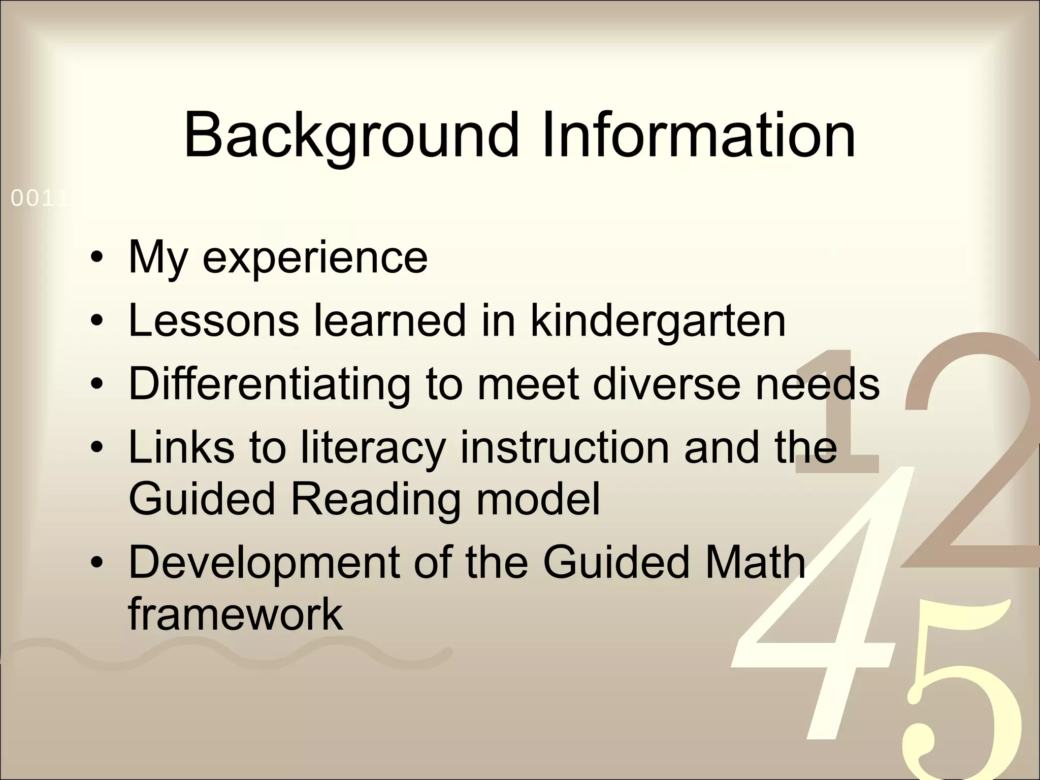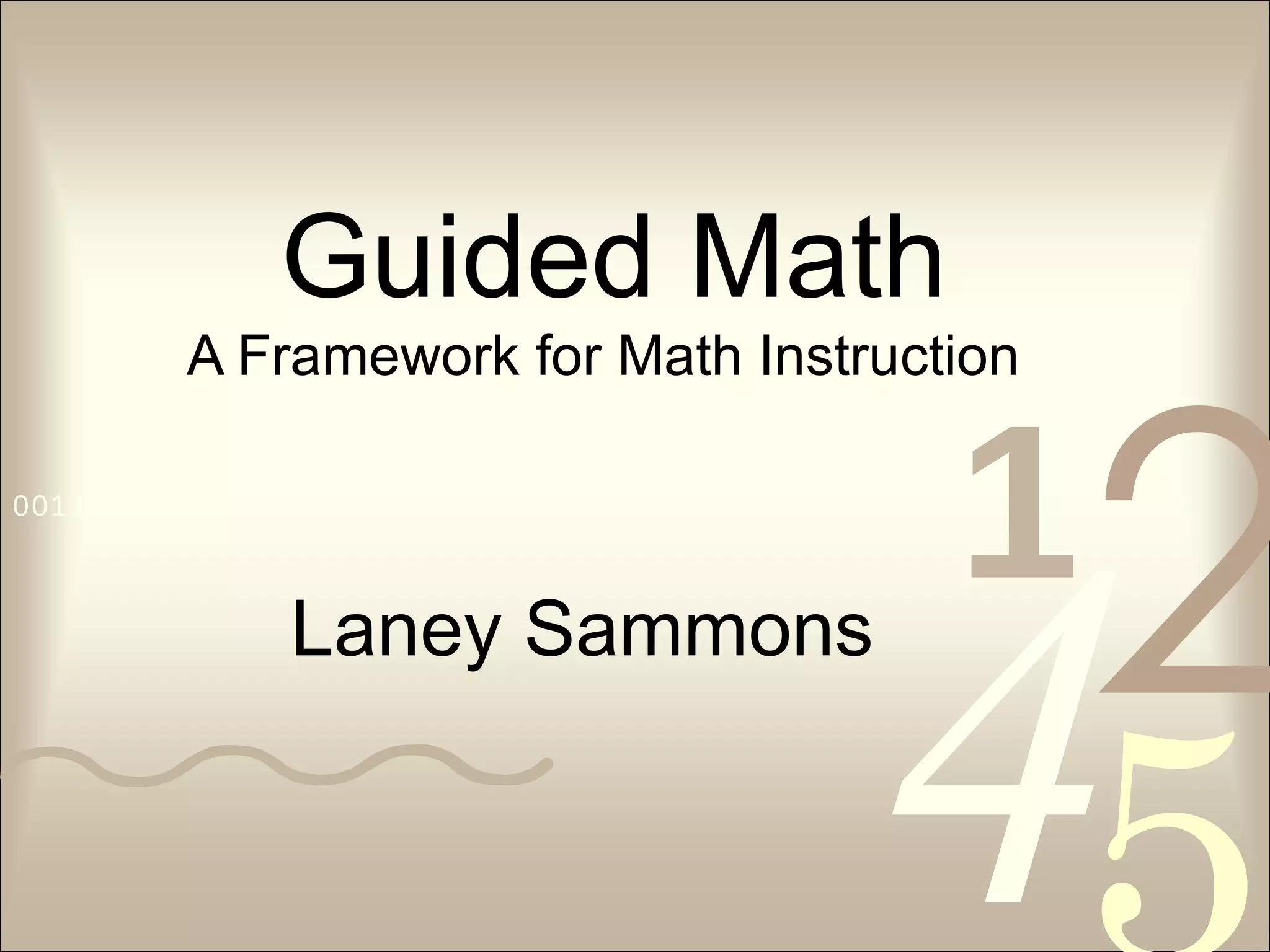 The document describes the Guided Math instructional framework developed by Laney Sammons. It is a flexible approach that uses whole class instruction, small group work, and independent work to meet students' unique needs. Key aspects include establishing a numerate classroom environment, ongoing assessment to form flexible groups, and using whole class, small group, and independent work components daily. The goal is to promote deep understanding and address gaps through differentiated instruction.