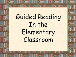 This document provides guidance on implementing guided reading in elementary classrooms. It discusses forming reading groups based on student ability levels, assessing students using running records, focusing lessons on reading strategies, and differentiating instruction for different grade levels. Suggestions are given for structuring guided reading lessons with a before, during, and after reading structure and selecting appropriate leveled books.