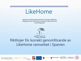 Som ett resultat av denna snabba utveckling av invandrare och flyktingintegration är det spanska samhället fördjupat i en process av kontrasterande resultat som påverkar alla sociala, politiska, kulturella och ekonomiska sfärer. Denna kombination av förändringar illustreras perfekt av de låga nivåerna av officiella ackrediteringar av utländska formella och icke-formella kompetensbevis, färdigheter och kunskaper. Faktum är att utbildningsdepartementet, som ansvarar för valideringen av dessa certifikat, knappt registrerar mellan en årlig inlämning av 50.000 och 60.000 ansökningar om erkännande av utländska titlar (Ministerio de Educación, Cultura y Deporte, 2011). Mot bakgrund av ett pressat behov av att utforma mer flexibla och smidiga system för att bedöma och certifiera kompetens och kunskap för nykomlingarna och flyktingarna för att främja deras integration och tillgänglighet till utbildning och sysselsättning, verkar LikeHome-ramverket och dess metoder vara ett optimalt verktyg för att galvanisera intressenter och stimulera politiska åtgärder på detta område.