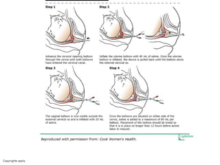The document provides guidelines for cervical ripening and labor induction. Key points include: