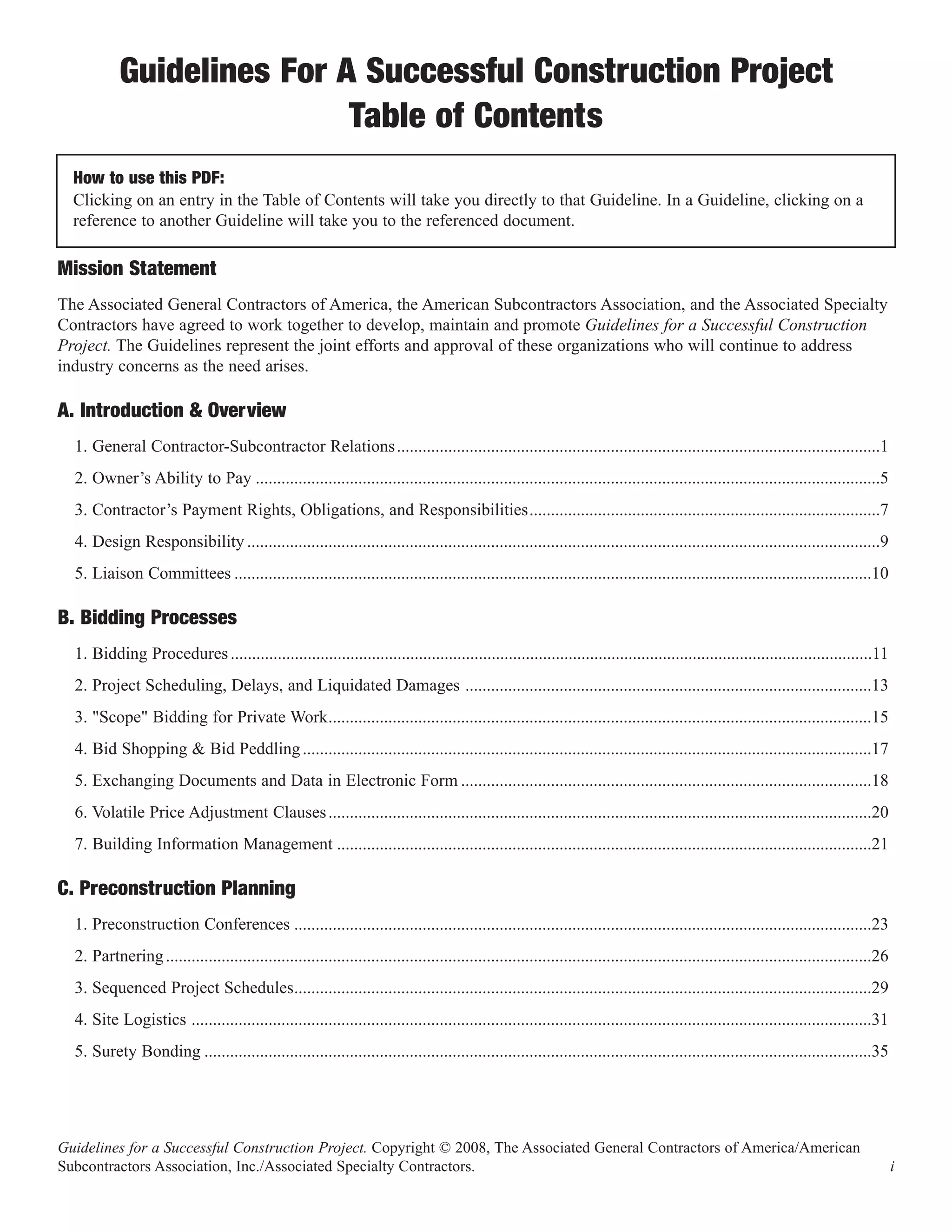 The document provides guidelines for successful relationships between general contractors and subcontractors on construction projects. It outlines best practices for the bidding process, awarding of contracts, scheduling, payments, safety, and other project execution phases. The overarching goals are to foster cooperation, communication, trust and teamwork among all parties to deliver the project on time, on budget and to a high quality.