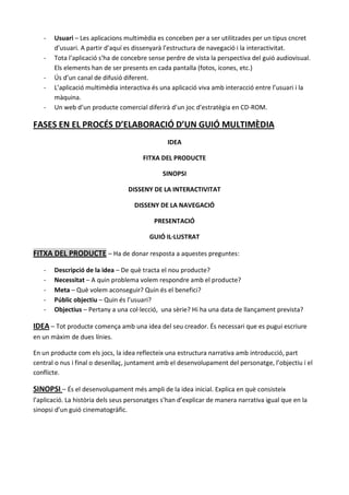 FASES EN EL PROCÉS D’ELABORACIÓ D’UN GUIÓ MULTIMÈDIA