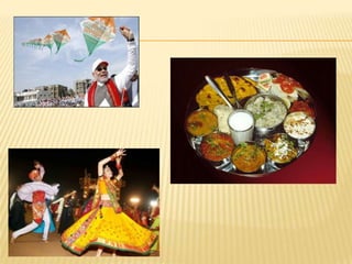 Gujarat is located on India's western coast along the Arabian Sea. It has a long coastline and stretches from the Gulf of Kutch in the west to the state of Maharashtra in the east. Gujarat has a rich history dating back to the Indus Valley Civilization and was home to important cities like Lothal and Dholavira. The state has a culturally diverse population with its own art, crafts, festivals, and customs. Gujarat's economy is centered around industries like chemicals and petrochemicals, engineering, oil and gas, pharmaceuticals, mining, ports, and textiles. It has experienced strong GDP growth in recent years and attracted foreign investment from countries like