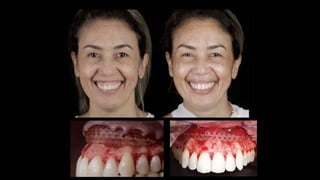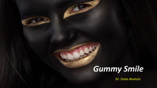 The document provides an extensive overview of gummy smile, detailing its etiology, diagnosis, and various treatment modalities including surgical and non-surgical options. It discusses causes such as periodontal deformities and soft tissue issues, and presents evaluation methods for identifying gummy smile, along with measurements for facial and dental proportions. Treatment options range from orthodontic and restorative approaches to specific surgical interventions like crown lengthening and myectomy.