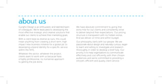 Gungho Design is a team dedicated to developing effective marketing solutions for clients. They strive to deliver projects on time and within budget while maintaining a professional and transparent process. Gungho has extensive experience working with various clients in the healthcare sector, including many NHS organizations, to create branding, campaigns, and other materials.