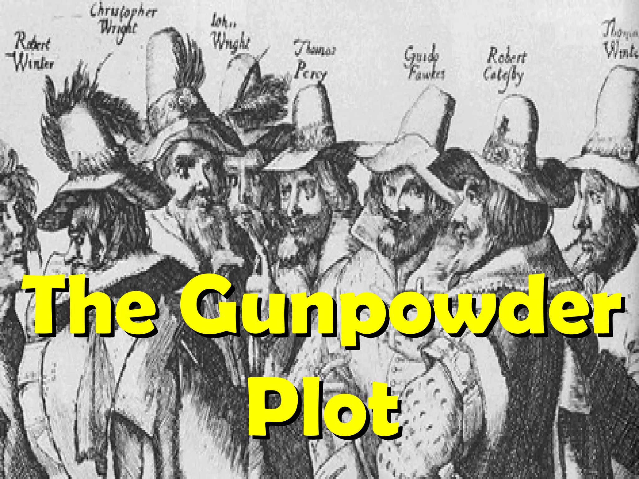 Guy Fawkes and a group of Catholic conspirators planned to blow up the Houses of Parliament in 1605 with 36 barrels of gunpowder while King James I was inside to protest laws prohibiting Catholics from practicing their religion freely. Their plot was discovered when the gunpowder was found and Fawkes, along with his co-conspirators, were arrested, tortured, and executed for treason against the King.