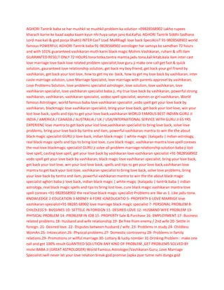 The document advertises services for solving various problems through tantric rituals and spells. These include love and marriage issues, financial problems, enemy removal, and more. Contact information is provided for an Aghori tantric baba who claims to provide guaranteed solutions within 72 hours through practices like vashikaran (mind control), black magic, and mantras. Several problems are listed that the baba says he can address, and contact details are repeated numerous times throughout.