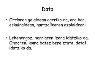 Ondoren, koma batez bereiztuta, data1