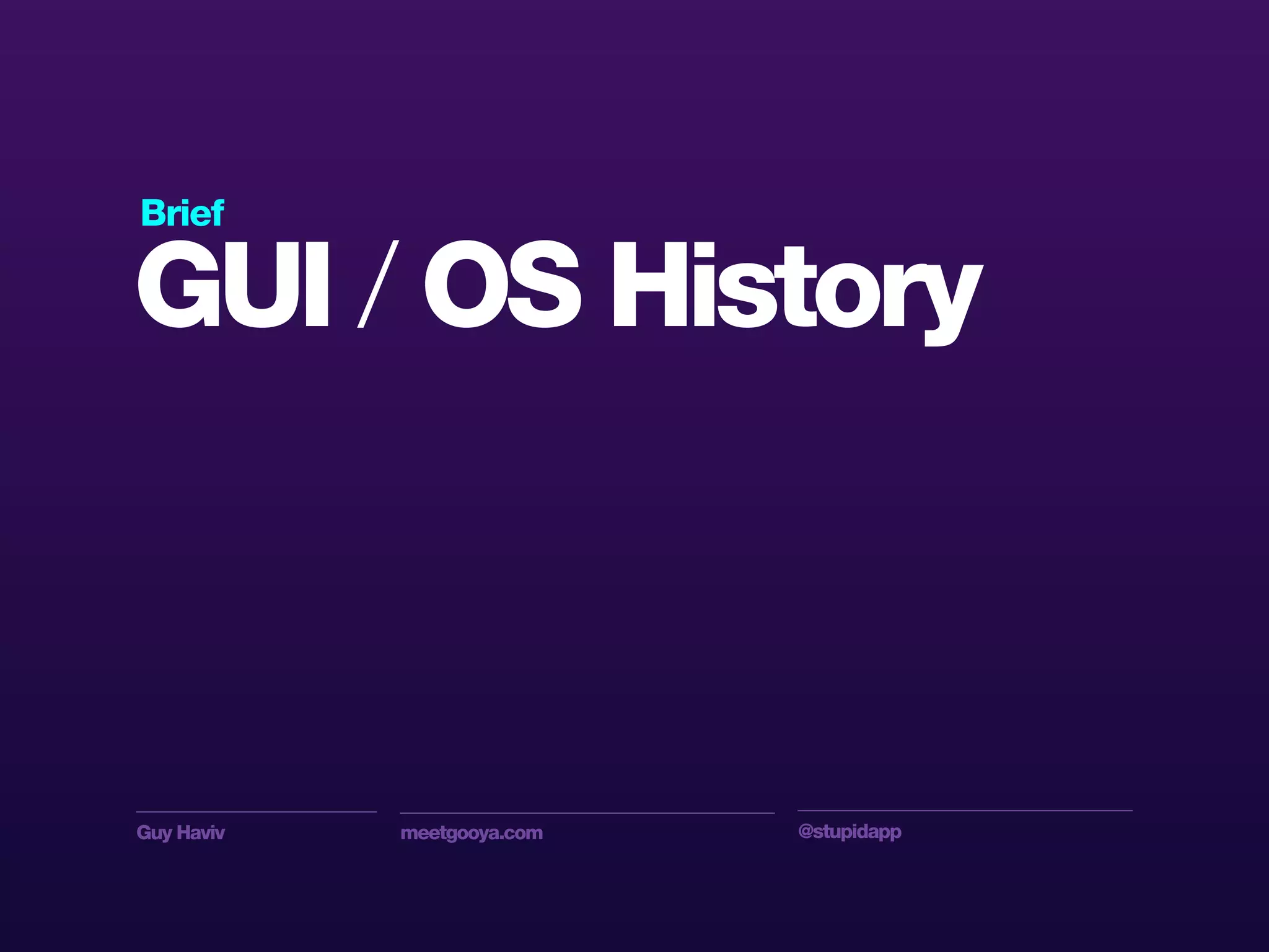 The document provides an overview of graphical user interface (GUI) history and operating systems, highlighting the evolution from MS-DOS to modern systems like macOS and Linux. It discusses various UI elements and their cultural significance, as well as the development of different operating systems and their frameworks. The content is presented in a series of historical notes, emphasizing the changes and innovations in user interface design over time.