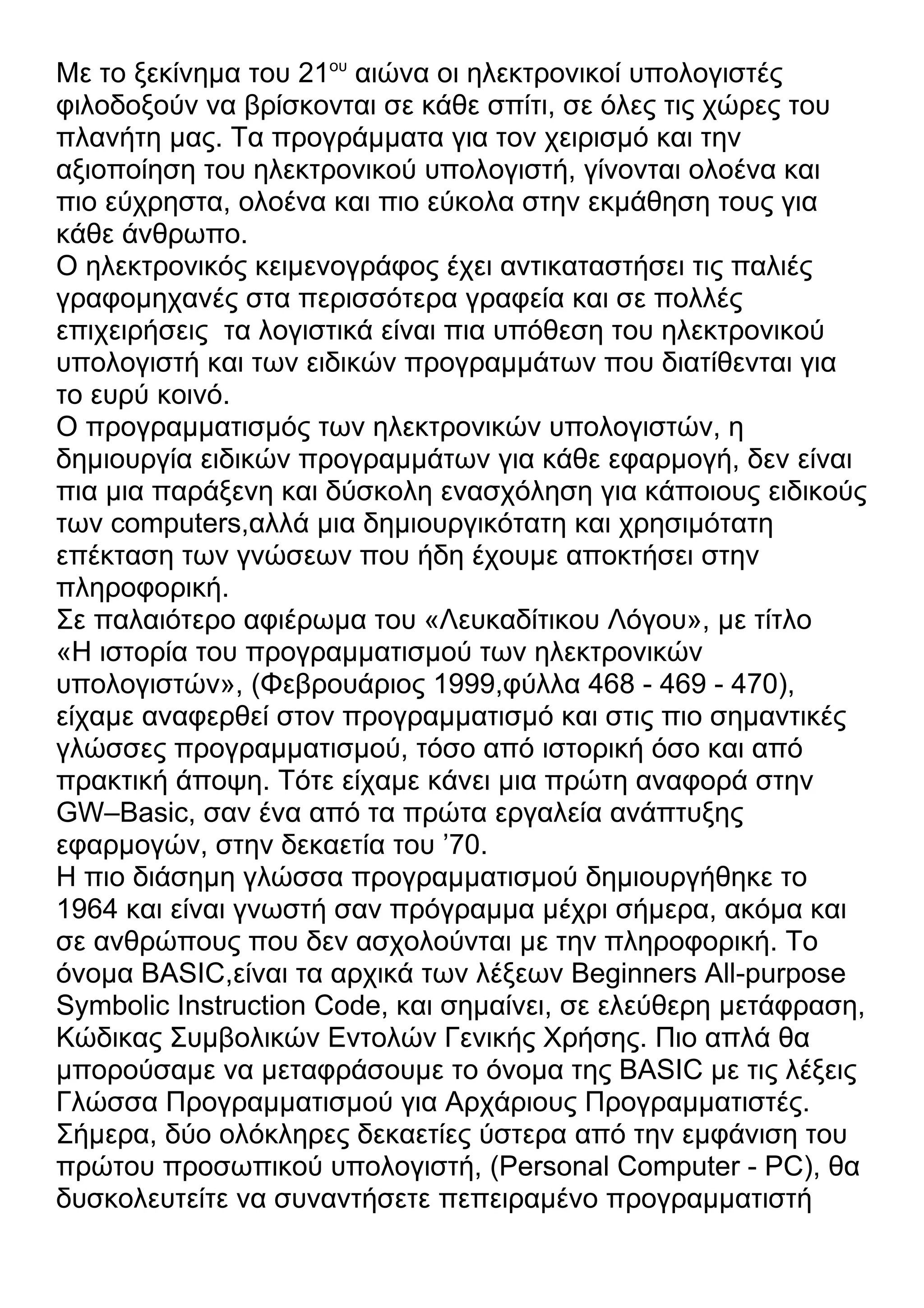 ηλεκτρονικούς υπολογιστές με την BASIC ακόμα και σήμερα, αν