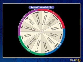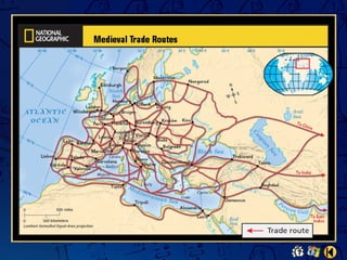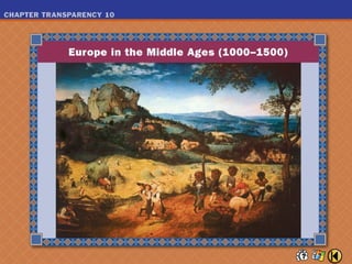 This document provides an overview of the chapter on peasants, trade, and cities in medieval Europe. It describes key developments like improved farming techniques that led to population growth, the rise of the manorial system and serfdom, the revival of trade and growth of money economies and cities, and daily life for peasants. It highlights new technologies, the three-field crop rotation system, and roles of lords and serfs. Trade expanded between Italian cities, Flanders, and northern France, and the growth of commerce contributed to the rise of capitalism.