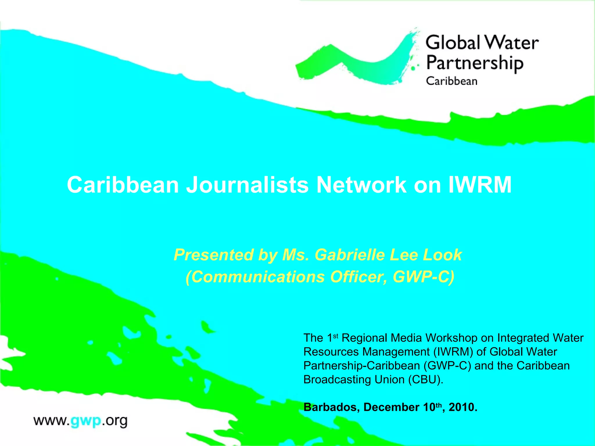 The document discusses the creation of a Journalists Network on Integrated Water Resources Management (IWRM) by the Global Water Partnership-Caribbean (GWP-C). Some key points: