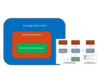 Module: 一套完整的功能,包含前後端,最 終編譯成 .js讓host page使用。 • EntryPoint(class): 屬於module中前端的部分, 為module中的某一功能。 Module AjaxAlert (ManyAjax) EntryPoint Class DoAlert (DoPost, DoUpdate …) Html host page demo.html