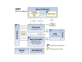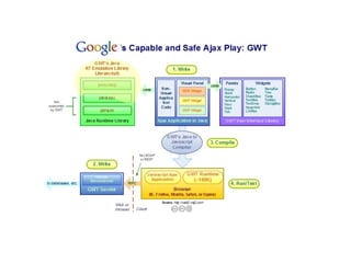 GWT allows developers to create responsive web applications using Java instead of JavaScript. It provides a compiler that translates Java code into optimized JavaScript that runs across browsers. This avoids the need for browser-specific code and improves development speed. Some key benefits of GWT include its support for AJAX, local event handling, client-side rendering, dynamic HTML, and Java features like static type checking and JUnit testing. However, it also requires adjusting to its Java-to-JavaScript translation and HTML/CSS abstractions.