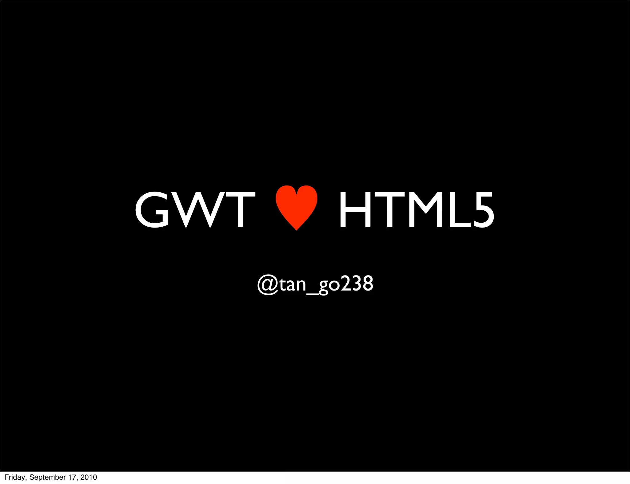 This document discusses Google Web Toolkit (GWT) and HTML5. It provides an agenda for a presentation that includes discussing what GWT is, how it compiles Java code to JavaScript, and its features like deferred binding. It then covers how GWT supports HTML5 features and discusses a session from Google I/O 2010 about GWT and HTML5. Key links are provided about GWT, the I/O session, and using GWT in Eclipse.