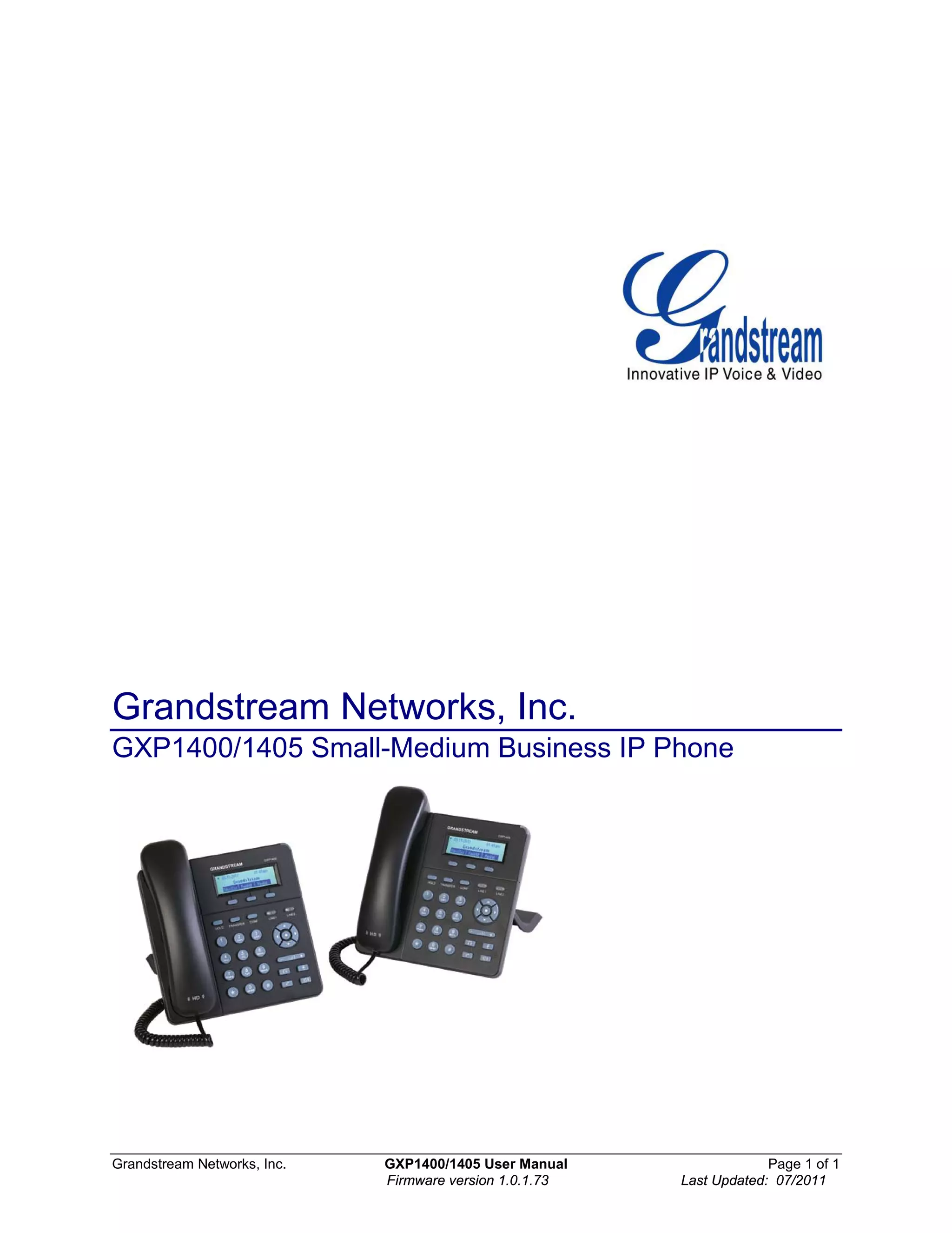 The Grandstream GXP1400/1405 user manual provides comprehensive instructions for installation, configuration, and operation of the small-to-medium business IP phone. It features a 128x40 graphical LCD, supports 2 lines with 1 SIP account, and includes a variety of telephony features such as HD audio quality, 3-way conferencing, and advanced security options. The manual also details safety compliance, warranty information, and the device's specifications to facilitate proper usage.