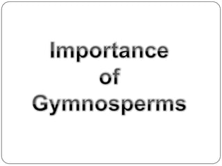 Gymnosperms are seed-bearing vascular plants characterized by naked seeds produced on cones, lacking protective enclosures found in flowering plants. They belong to four phyla: Coniferophyta, Cycadophyta, Ginkgophyta, and Gnetophyta, each with distinct features and habitats. Gymnosperms play a crucial ecological role by providing habitats, reducing greenhouse gases, and are economically important as sources of timber, paper, and medicinal products.