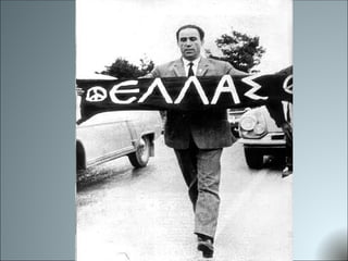 Γρ. Λαμπράκης Ποιοςήταν; Σπούδασε ιατρική. Αθλητής με πολλές νίκες. 1950 θέση υφηγητή Μαιευτικής-Γυναικολογίας. 1961 εκλέγεται βουλευτής Πειραιά. (ΕΔΑ) 1963 Πραγματοποιεί την 1 η Μαραθώνια πορεία Ειρήνης .