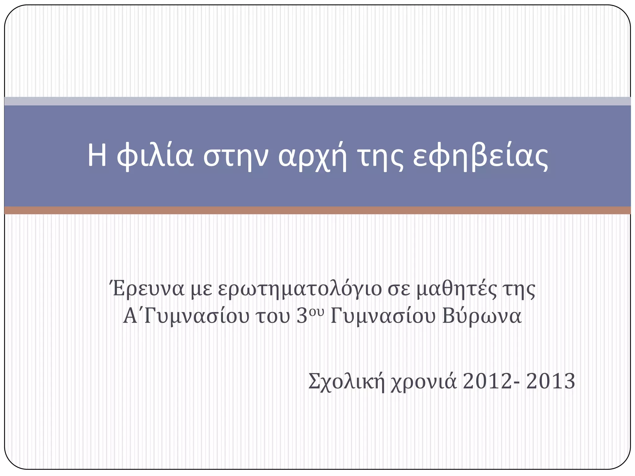 Έρευνα με ερωτηματολόγιο για τη θέση της φιλίας στη ζωή εφήβων 12-13 ετών. Εργασία μαθητών στα πλάισια διαθεματικής εργασίας στην ενότητα " Φίλοι για πάντα"