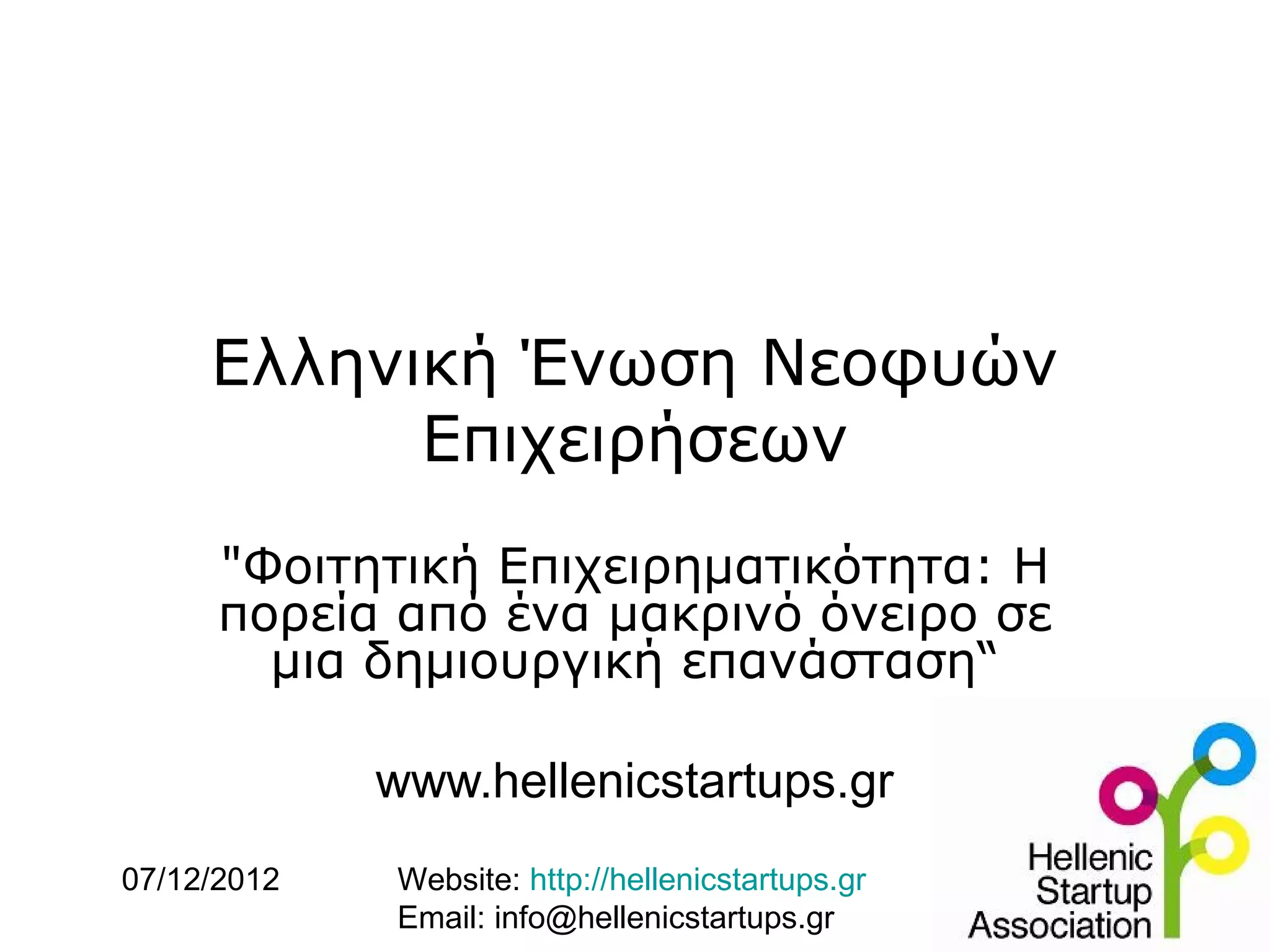 07/12/2012 Website: http://hellenicstartups.gr