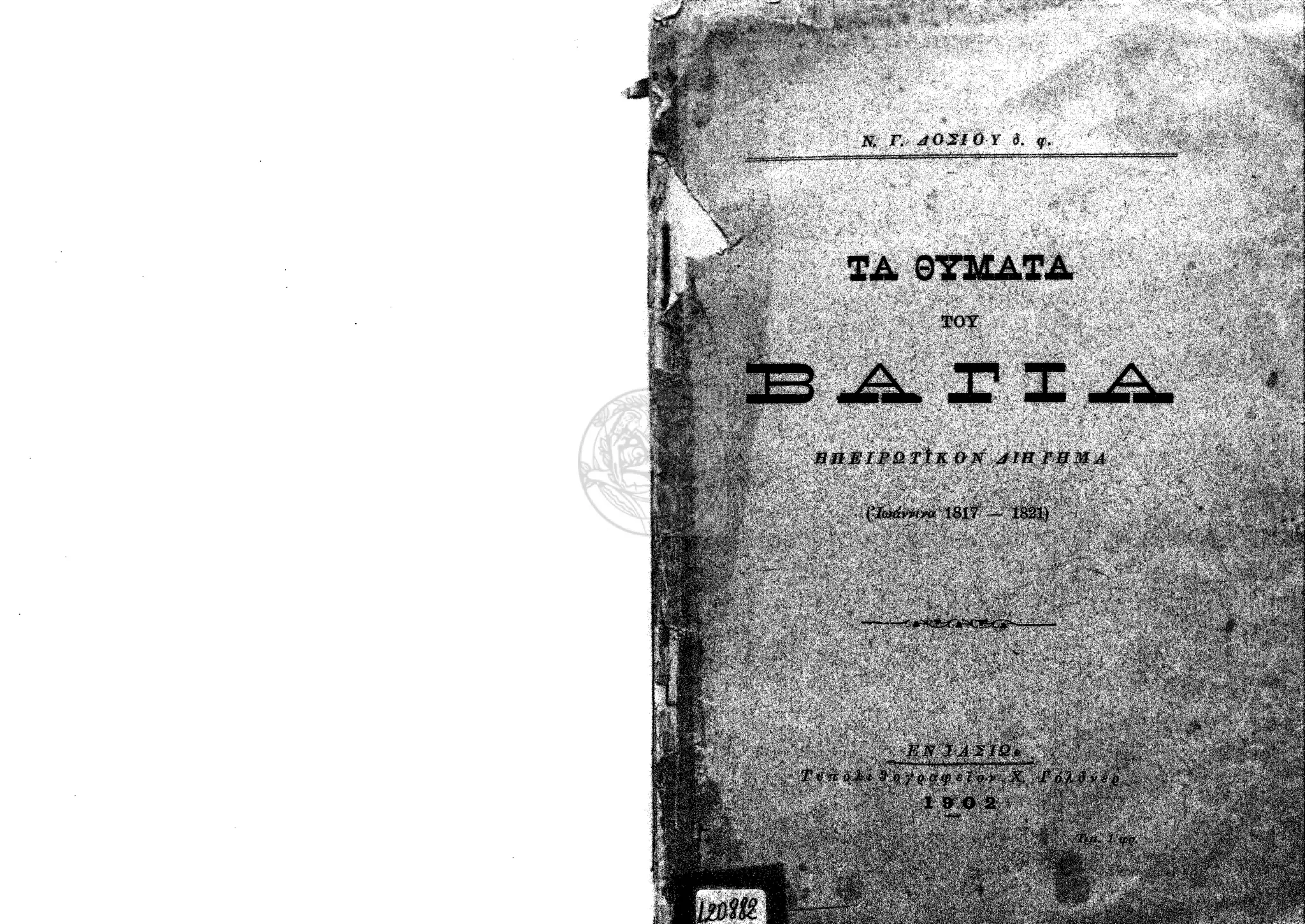 Τα θύματα του Βάγια : Ηπειρωτικόν διήγημα (Ιωάννινα 1817-1821) / Ν. Γ. Δοσίου δ. φ.