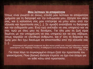 χρήματα για τη διατροφή και την ενδυμασία μου, ζήτησα τον οίκτο