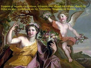 Σύμφωνα με τομύθο των Ελλήνων, η Ευρώπη ήταν αδελφή του Κάδμου, ιδρυτή της