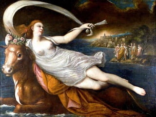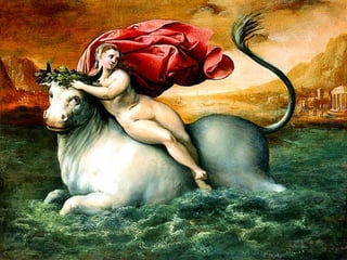 Για να τηνπλησιάσει μεταμορφώθηκε σε ήρεμο, εύσωμο και δυνατό ταύρο και πήγε