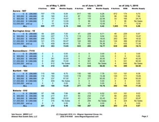 1) The document analyzes housing inventory levels by price range for detached properties in several Chicago suburbs for May 1, 2010, June 1, 2010, and July 1, 2010.