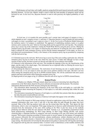 This document proposes a new technique to enhance the learning capabilities and reduce the computation intensity of a competitive learning multi-layered neural network using the K-means clustering algorithm. The proposed model uses a multi-layered network architecture with backpropagation learning to analyze web log data. Data preprocessing steps like cleaning, user identification, and transaction identification are applied to prepare the enterprise proxy log data for analysis. The proposed framework aims to discover useful patterns from web log data through a combination of K-means clustering and a feedforward neural network.