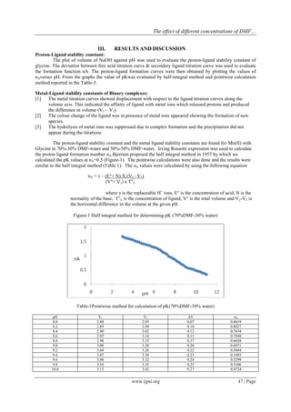 The study investigates the stability constants of manganese (Mn) complexes with glycine in various concentrations of DMF-water mixtures using potentiometric titrations. Results indicate that the stability of the Mn-glycine complex is higher in a 70%-30% DMF-water mixture compared to a 50%-50% mixture, attributed to decreased solvation of metal ions in DMF. The findings enhance understanding of metal-ligand interactions, potentially influencing pharmaceutical applications and coordination chemistry.