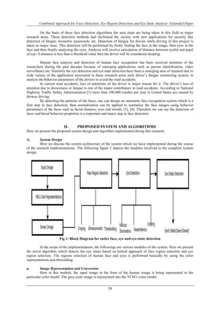 This paper presents a combined approach for face detection, eye region detection, and eye state analysis aimed at improving road safety by analyzing driver fatigue. It details an algorithmic implementation that utilizes the YCbCr color model to effectively detect face and eye regions, and accurately determine whether the eyes are open or closed. The proposed system demonstrates significant advancements in the accuracy of eye state detection compared to previous methodologies, highlighting its potential applications in safety monitoring systems.