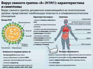 Документ описывает эпидемиологическую ситуацию по гриппу, включая данные о заболеваемости в Москве за 2008-2009 годы, характеристики вирусов и их передачу, а также терапевтические рекомендации для лечения различных форм заболевания. Представлены сведения о штаммах вируса, его происхождении и клинических признаках инфекции, а также протоколы лечения для разных групп пациентов, включая беременных. Подробно описаны методы профилактики и используемые вакцины против гриппа.