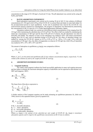 The document summarizes a study on using solid waste from the leather industry as an adsorbent for removing dye from wastewater. Some key findings: