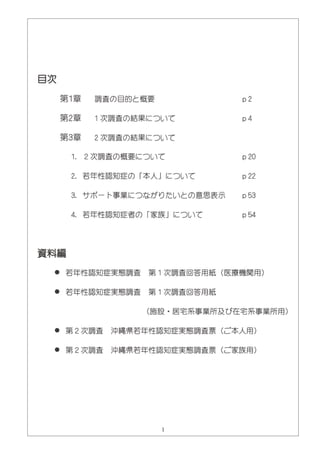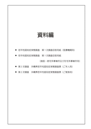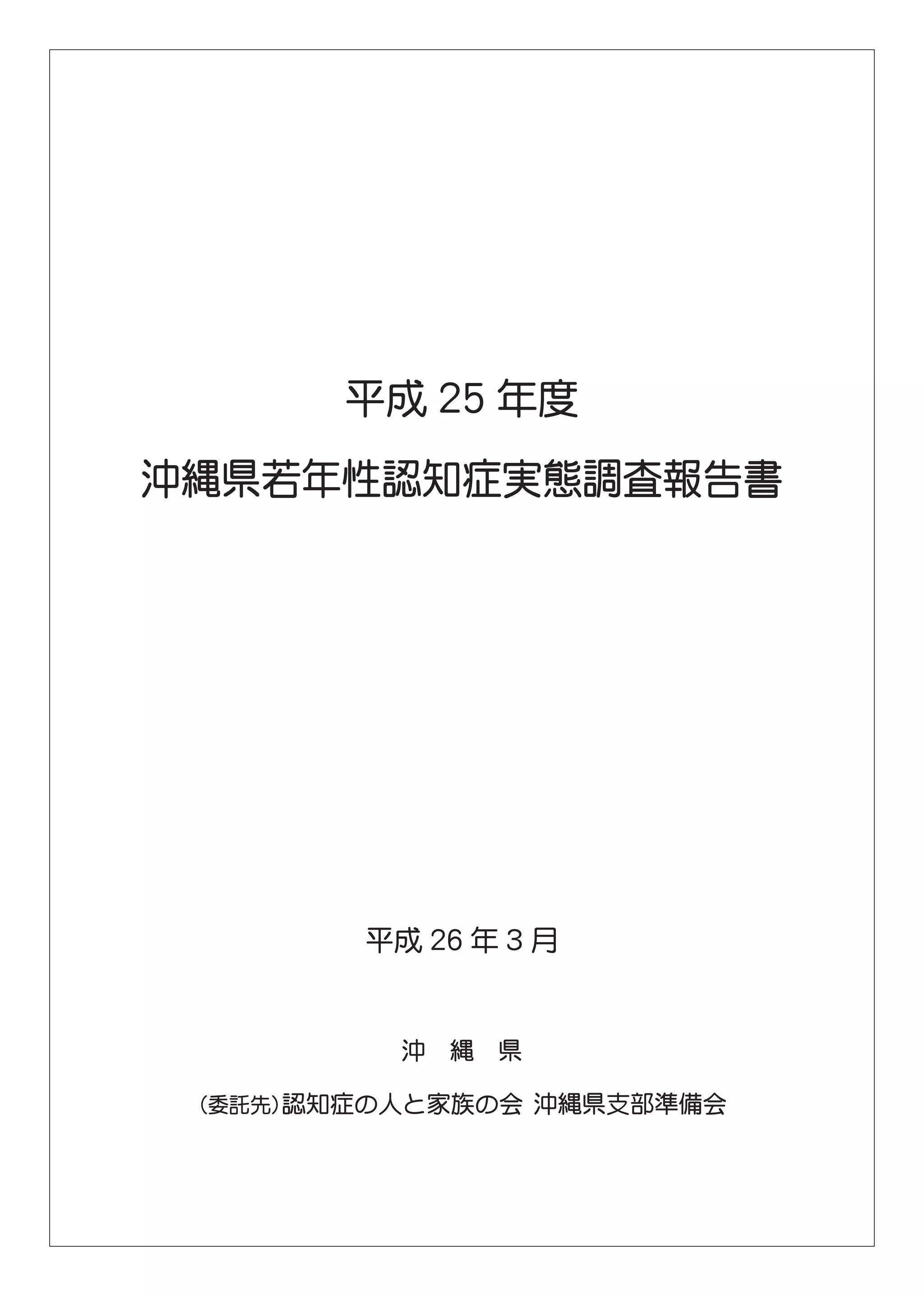 沖縄県若年性認知症実態調査報告書 委託先 (公益社団法人)認知症の人と家族の会沖縄県支部準備会 発行 沖縄県 福祉保健部高齢者福祉介護課 平成