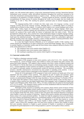 This research paper examines how contextual variables affect the teaching and learning of English as a Second Language (ESL) in diverse settings, specifically through observations of ESL lessons in Istanbul. It discusses the roles of teachers, linguistic choices, and sociolinguistic environments, emphasizing the impact of students' first languages and prior knowledge of English on their learning experiences. The study also highlights differences in ESL education across inner, outer, and expanding circle countries, addressing the challenges and adaptabilities necessary for effective ESL instruction.