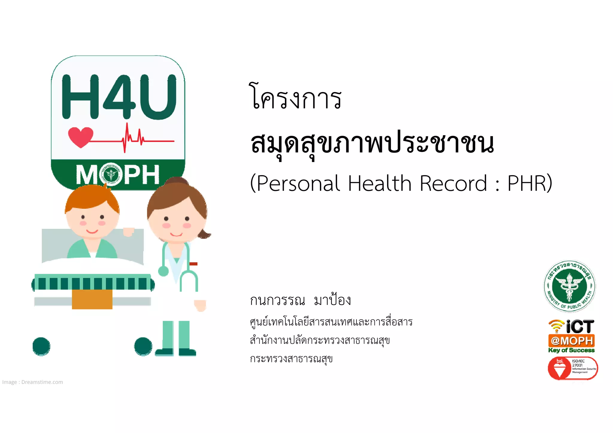 : PHR) Image : Dreamstime.com กนกวรรณ มาป้อง ศูนย์เทคโนโลยีสารสนเทศและการสื่อสาร สํานักงานปลัดกระทรวงสาธารณสุข กระทรวงสาธารณสุข