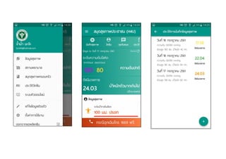 : OTP •เปิดเผยข้อมูลเฉพาะคนที่รับการยืนยัน จาก รพ. ขอ consent •ประชาชนจะให้ข้อมูลผู้อื่นได้ ผู้นั้นต้องอนุญาต •สามารถลบข้อมูลในมือถือได้ เมื่อเลิกใช้ •Protocol : https •Authentication : oAuth2.0 •Data Encryption •ISO-27001