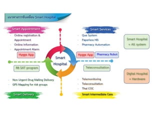business model และ eco system ของกระทรวงสาธารณสุข สนับสนุนให้ 1. ประชาชนสามารถเข้าถึงข้อมูลสุขภาพของตนเอง (จากอดีตถึงปัจจุบัน) 2. สร้างความตระหนักในการดูแลสุขภาพและป้องกันโรคได้ด้วยตนเอง 3. ส่งเสริมการสร้าง Smart Health ให้กับ Smart Hospital