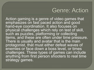 Action gaming isa genre of video games that