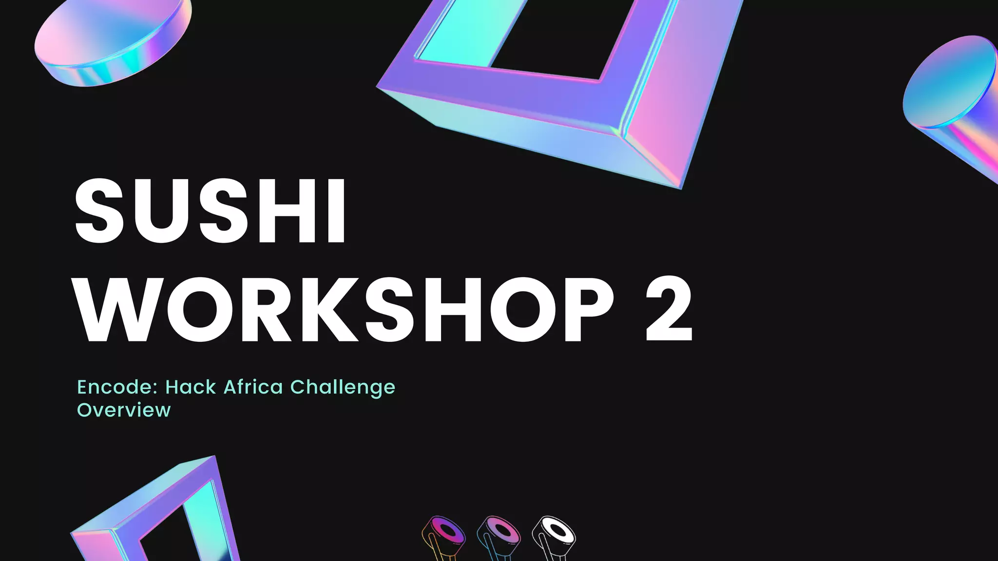 The document provides an overview of Encode's Hack Africa Challenge involving building applications on SushiSwap, the decentralized exchange and automated market maker protocol deployed on over 17 blockchain networks. It outlines challenges for participants to collect and provide insights on multichain AMM activity, perform swaps with a front end or smart contract, or build a application on BentoBox, Sushi's token vault. The document also provides introductory information on getting started with Sushi including swapping tokens, familiarizing yourself with the interface, choosing a framework like React, and examples of how to call smart contract functions and perform token swaps.