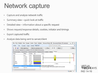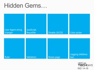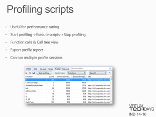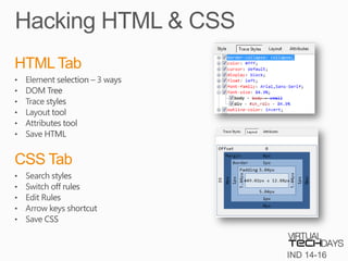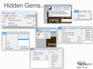 This document provides information about Internet Explorer and resources related to web development. It lists the Internet Explorer Team Blog, sites about the beauty of the web and HTML5, and links to test drives and documentation for Internet Explorer 10 and Windows Phone platforms. Additional social media and technical support links from Microsoft are also referenced.