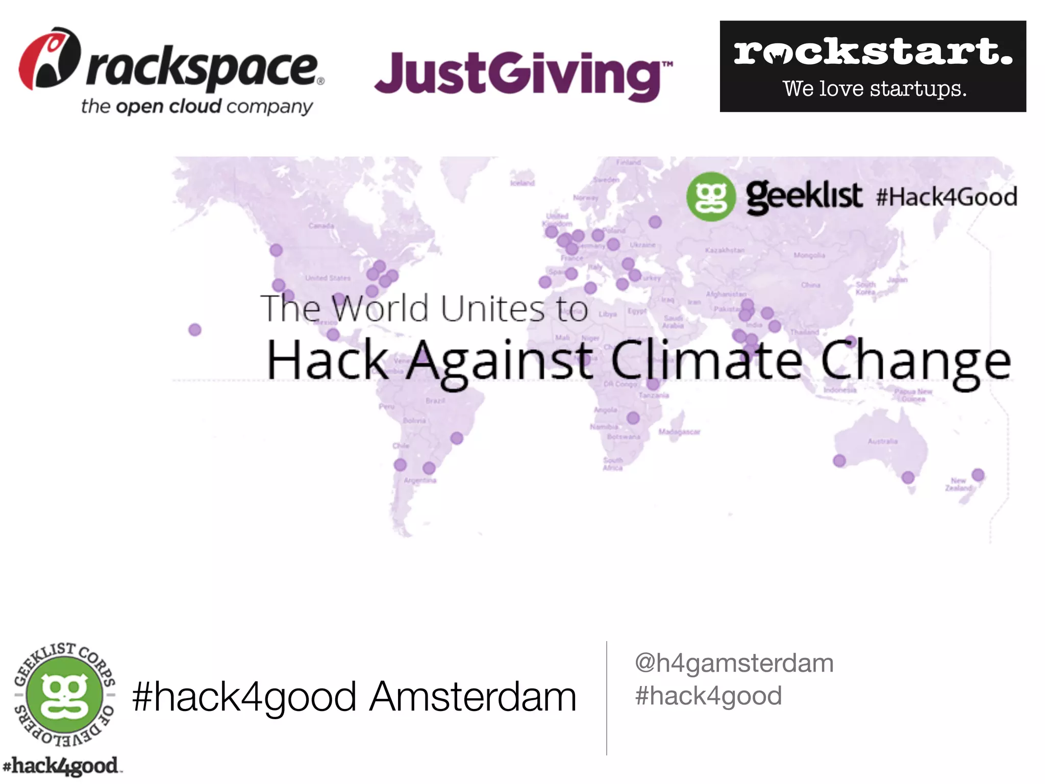 This document provides information about the #hack4good hackathon event focused on addressing climate change challenges. It summarizes that the event involves over 33 cities around the world participating to create technology-based projects that address climate issues. It also outlines the judging criteria and process for projects to be considered in local and global competitions, with an emphasis on impact, foundations, portability, distribution, sustainability, and innovation. Local mentors are available to assist teams throughout the 72 hour hacking period.