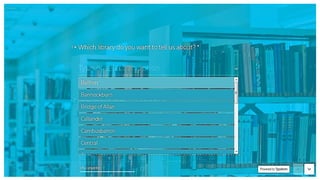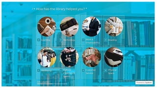 The document describes a case study of an impact measurement tool called "Storing Stories" that was created at a hackathon to gather user experience feedback and measure the impact of library services. It discusses how the tool was developed and piloted at Stirling libraries to collect anecdotal stories from users linked to strategic priorities like reading, digital inclusion, economic wellbeing, and more. The tool helped demonstrate the tool's impact by mapping user stories to indicators. There are plans for further development and expanding the pilot nationally.